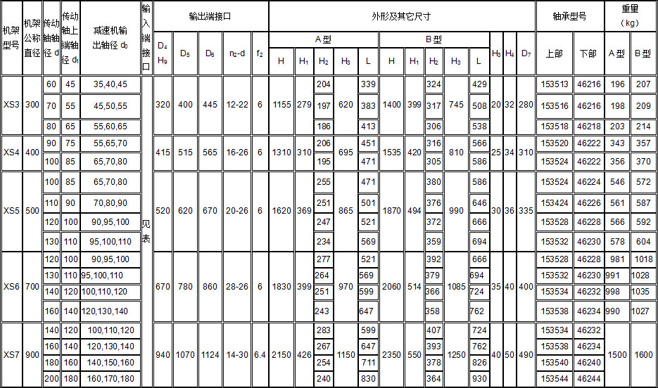 XD、XS型機(jī)架輸入端接口尺寸: