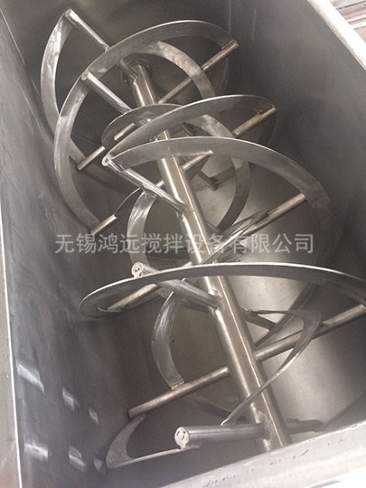 2、混合速度快,混合均勻度高,螺旋帶上可以安裝刮板,對(duì)有粘性物料亦有很好的混合效果。