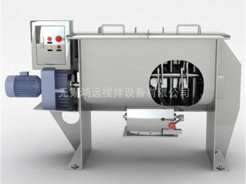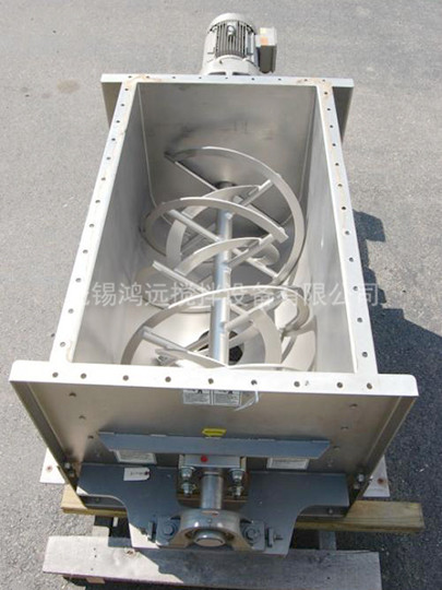 臥式螺帶混合機(jī)由U形容器、螺帶攪拌葉片和傳動(dòng)部件組成;U形的長(zhǎng)體筒體結(jié)構(gòu),保證了被混合物料(粉體、半流體)在筒體內(nèi)的小阻力運(yùn)動(dòng)。正反旋轉(zhuǎn)螺條安裝于同一水平軸上,形成一個(gè)低動(dòng)力的混合環(huán)境,螺帶狀葉片一般做成雙層或三層,外層螺旋將物料從兩側(cè)向中央?yún)R集,內(nèi)層螺旋將物料從中央向兩側(cè)輸送,可使物料在流動(dòng)中形成渦流。加快了混合速度,提高了混合均勻度。